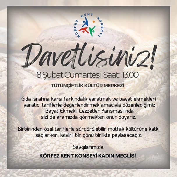 Körfez Kent Konseyı Kadın Meclisi Baskanı Dr.Zehra Coskun Salıh yarışmayla ilgili yaptığı açıklamada, "Her yıl milyonlarca ton ekmek israf ediliyor. Yalnızca Türkiye'de günlük olarak yaklaşık 5 milyon ekmek çöpe gidiyor. Bu israf, sadece aile bütçesini değil, aynı zamanda doğal kaynaklarımızı da olumsuz etkiliyor. Bu yarışma ile bayat ekmeklerin lezzetli tariflerle yeniden kullanılabileceğini göstermek ve toplumsal bir farkındalık oluşturmak istiyoruz. Yarışmacılarımız basvurularnı tamamladı. Yarışmamızı izlemeye ve final heyecanını paylaşmaya tüm halkımız davetlidir." dedi.