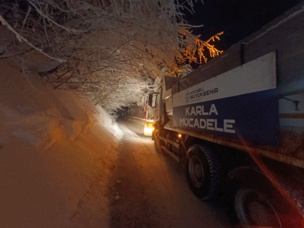 Büyükşehir Belediyesi Karla Mücadele Ekipleri, kar yağışının yoğun olduğu bölgelerde, gece ve gündüz olmak üzere iki vardiyalı olarak görev yapıyor. Özellikle Samanlı Dağları’nın 1.600 metre zirvesinde, İstanbul’a yaklaşık 1,5 saat mesafedeki Sapanca Gölü ve İzmit Körfezi manzarasıyla konuklarına eşsiz güzellikler sunan Kartepe, kış mevsiminde tatilcilerin akınına uğruyor. Bu kapsamda Büyükşehir ekipleri, Kartepe Kayak Merkezi’ne giden yolun açık tutulması için 24 saat boyunca küreme ve tuzlama çalışması yapıyor.