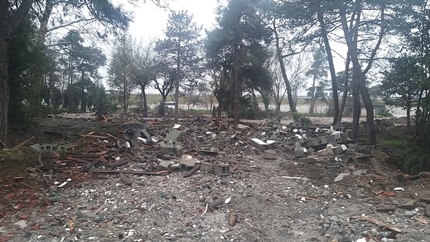 Kartepe Memduh Tağmaç kışlasının son hali. Kocaeli Büyükşehir Belediyesine devredilen alanın hali içler acısı. Yıkılan bina molozları toprağın üzerine yayılmış durumda.