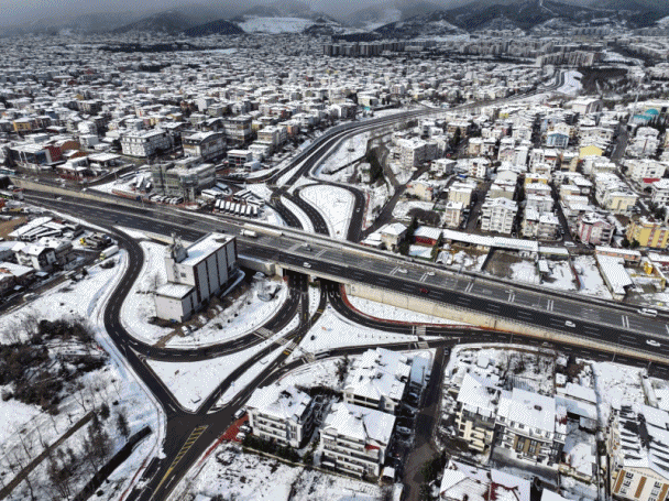 Kocaeli Büyükşehir Belediyesi, kuvvetli kar yağışından kentin olumsuz etkilenmemesi için 2.321 personel ve 623 araç-iş makinesi ile yaklaşık 1.750 kilometrelik yolda karla mücadele için yoğun mesai harcıyor. Ekipler bir yandan kar temizleme ve tuzlama çalışmalarına devam ederken, Büyükşehir’in kente kazandırdığı dev eser ve hizmetler ise kar yağışı sonrası kartpostallık görüntüler oluşturdu. Kart örtüsü ile kaplanan projelerin eşsiz manzaraları, fotoğraflarla ölümsüzleştirildi.