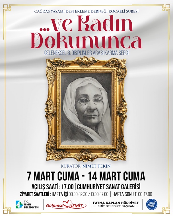 Çağdaş Yaşamı Destekleme Derneği Kocaeli Şubesi tarafından 8 Mart Emekçi Kadınlar Gününe özel geleneksel “…ve Kadın Dokununca” 8. Disiplinler arası Karma Sergisi 7 Mart Cuma günü saat 17.00’de İzmit Cumhuriyet Sanat Galerisinde açılıyor. Sergi 14 Mart Cuma gününe kadar ziyarete açık olacak.