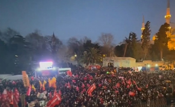 İstanbul Büyükşehir Belediye (İBB) Başkanı Ekrem İmamoğlu'nun gözaltına alınmasına tepkiler çığ gibi büyümeye devam ediyor. İmamoğlu'nun gözaltına alınmasının ikinci gününde CHP Genel Başkanı Özgür Özel, saat 20.30'da Saraçhane'de toplanma çağrısı yapmıştı.