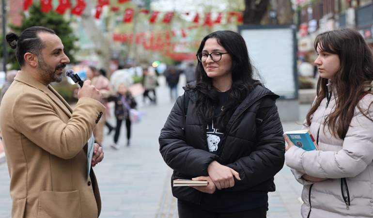 Her yıl Türkiye’nin en büyük kitap fuarını düzenleyen Kocaeli Büyükşehir Belediyesi, normal zamanlarda da kitap okumaya teşvik eden proje ve etkinlikleri ile kitap tutkunlarını buluşturuyor. Bu kapsamda Büyükşehir, sokak röportajı formatında gerçekleştirdiği etkinlikte kitap sevgisini aşıladı. Kütüphane Haftası kapsamında düzenlenen “Soru-Cevap Yarışması” ile Cumhuriyet Bulvarı’ndan geçen vatandaşlara edebiyatla ilgili sorular yöneltildi. Soruları doğru yanıtlayan katılımcılar, birbirinden değerli kitapların sahibi oldu.