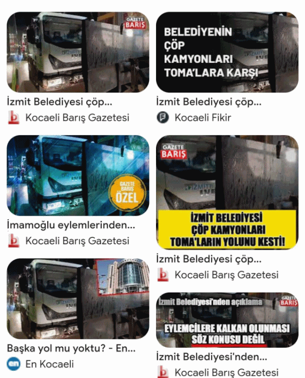 Bazı yandaş basın organlarında, İzmit Belediyesine ait bir temizlik aracının TOMA’nın önünü kestiği ve eylemcilere kalkan olduğu yönünde çarpıtılmış, uydurma haberler yayımlandı.