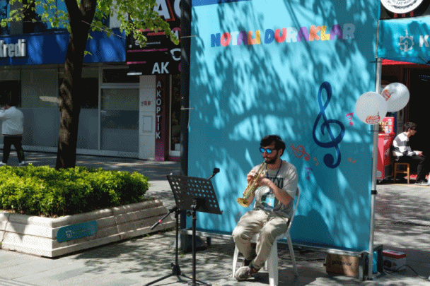 Konservatuvar ve Sanat Merkezi öğrencileri gösterilerinde çello, ukulele, piyano, gitar, bağlama, keman ve flüt enstrümanlarını kullandı. İşitme engelli öğrencilerden oluşan ritim grubu da “Notalı Duraklar”da müzik yaptı. Aldıkları eğitimi başarı ile sergileyen çocuklar, yetenekleri ile kendilerine hayran bıraktı.