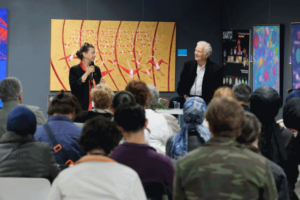 Seka Sanat İhtisas Merkezi’nin sergi salonunda gerçekleştirilen söyleşiyi sanatçının eşi ve kızının yanı sıra; sanatçılar, sanatseverler ile çok sayıda Güzel Sanatlar Üniversitesi öğrencisi izledi. Söyleşisinin kısa bir süre önce açılan “30° Doğu Meridyeni Kocaeli Resim ve Sanat Koleksiyonu Sergisi-Bir Zaman Fraktalı” sergisinin önünde yapılması duayen sanatçıdan unutulmayacak bir övgü aldı.