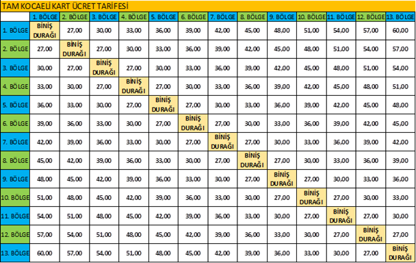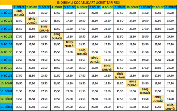 Hat 41K gidiş 35, dönüş 40 durak ve toplam 40 kilometre tek yön uzunluğuna sahip. Gidiş ve dönüşün 10 bölgeden oluştuğu güzergâhlarda her bölge içine tanımlanmış duraklar bulunuyor. Biniş yapılan durağın tanımlı olduğu bölgeyle iniş yapılan durağın tanımlı olduğu bölge arasında ücretlendirme hesaplaması yapılıyor. Otobüs içindeki cihaza kart okutulduğunda, binilen bölgeden son bölgeye kadar belirlenen ulaşım ücreti ‘Kocaelikart’ içindeki bakiyeden bloke ediliyor. Otobüsten indikten sonra duraklardaki ücret iade cihazına kart okutulduğunda, sadece gidilen bölgenin ücreti alıyor, geriye kalan miktar ise karta iade ediliyor.