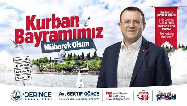 Derincelileri bayramlaşma törenine davet eden Derince Belediye Başkanı Av. Sertif Gökçe, “Başta ilçe halkımız olmak üzere ülkemizin ve İslam aleminin Kurban Bayramı’nı tebrik ediyor, tüm Derincelileri Yenikent Kültür Merkezi’nde düzenleyeceğimiz bayramlaşma törenimize bekliyorum” dedi.