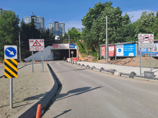 Kocaeli Büyükşehir Belediyesi, “Alikahya Stadyum Tramvay Hattı Projesi” kapsamında trafiğe kapattığı Anadolu Otoyolu altındaki menfezi yeniden trafiğe açtı. Tramvay hattına ait rayların döşendiği Anadolu Otoyolu altındaki menfezde, yüksek araç sürücülerinin alternatif güzergâhları kullanmaları zorunlu olacak. Bu kapsamda menfez giriş ve çıkışlarında sürücülerin dikkatini çekmek için “Yükseklik Sınırı: 3,80 m”, “Ağır Tonajlı Araç Girişi Yasaktır” ve “Alternatif Rota Kullanınız” uyarı levhaları yerleştirildi.