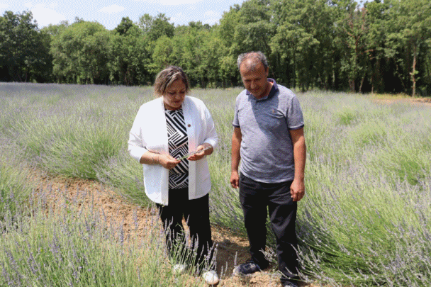 Çakır ayrıca, Durhasan Mahallesi’ndeki yaklaşık 5 dönümlük lavanta bahçesini de ziyaret etti. Lavantaların çiçek açmaya başladığını belirten Çakır, “Bu ayın sonunda güzel bir hasat şenliği yapacağız. Geçen yılki ürünlerimizin bir kısmıyla lavanta yağı ürettik ve bu yağlarla kolonya hazırlattık. Bu yıl da etkinliklerimiz devam edecek. Her yıl ürün miktarımızı artırıyoruz” dedi.