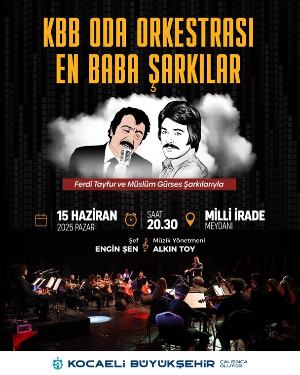 Büyükşehir Belediye Konservatuvarı Oda Orkestrası 15 Haziran Babalar Günü’nde, Müslüm Gürses ve Ferdi Tayfur’un en sevilen şarkılarını senfonik ortamda yorumlayacak. İzmit Milli İrade Meydanı’ndaki konser saat 20.30’da başlayacak.