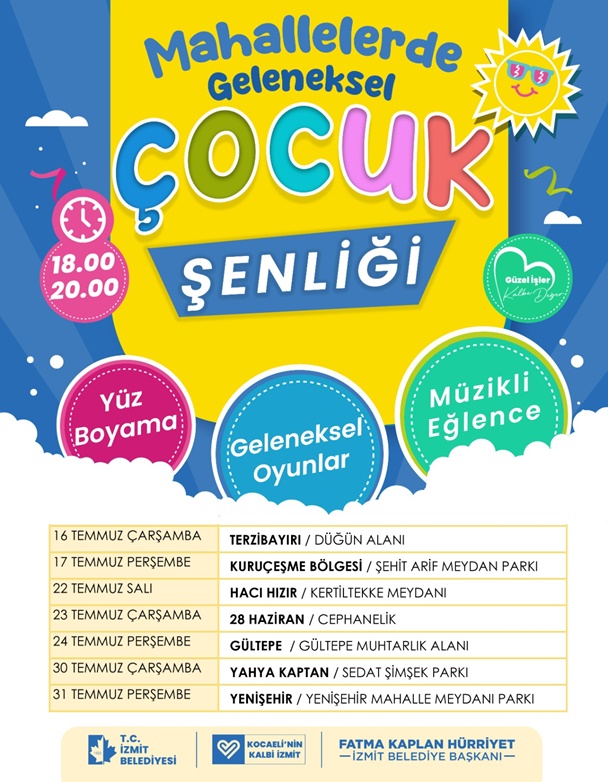 Çocuk Dostu Belediyecilik anlayışı ile çalışmalarına devam eden İzmit Belediyesi çocuk etkinliklerine aralıksız devam ediyor. Geleneksel mahalle oyunlarını alanında uzman eğitmenlerce oynatıldığı mahallelerde oyun etkinlikleri bu yıl da aynı formatla çocuklarla buluşacak.
