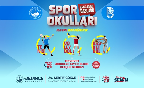 Derince Belediyesi, çocukları spora teşvik etmek ve yaz tatilini verimli geçirmelerini sağlamak amacıyla Spor Okulları’nı hayata geçiriyor. 2012-2018 doğumlu çocuklara yönelik olarak düzenlenecek olan yaz spor okullarında; tenis, voleybol ve basketbol branşlarında eğitimler verilecek. Bu yaş grubundaki çocuklar, yaz döneminde uzman eğitmenler eşliğinde yeteneklerini geliştirme ve spor yapma imkanına sahip olacak.