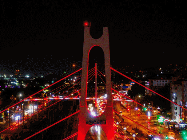 Vatan sevgisinin simgesi olan Türk bayrağından ilham alınarak gerçekleştirilen ışıklandırma çalışması, Kocaeli’ye hem estetik bir dokunuş kattı hem de duygu yüklü bir atmosfer oluşturdu. Gece boyunca şehrin kalbinde parlayan kırmızı ve beyaz ışıklar, gökyüzünü adeta bir bayrak gibi süsledi.