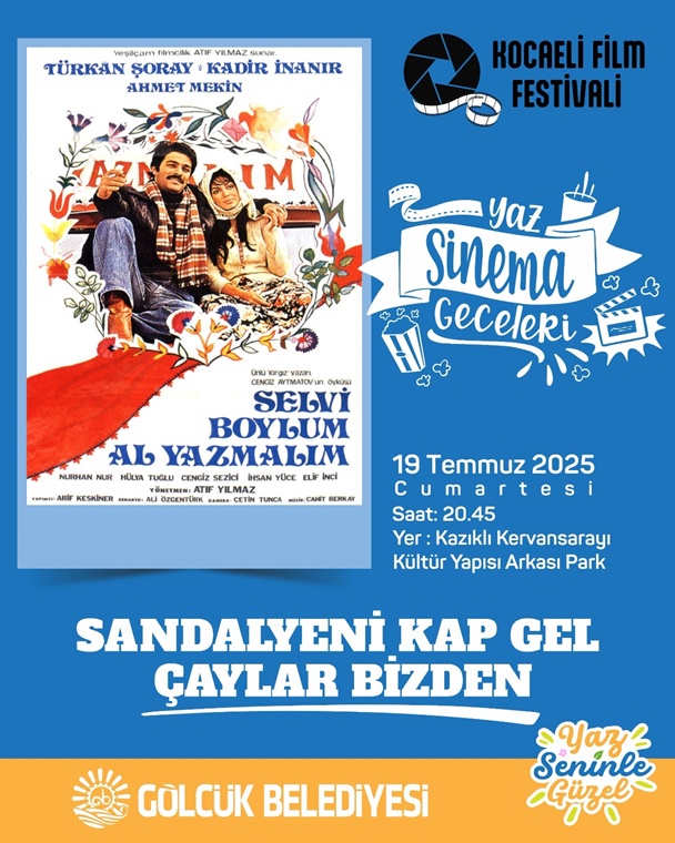 Gölcüklü sinemaseverler, sıcak yaz akşamlarında Gölcük Belediyesi'nin ücretsiz Yaz Sinema Geceleri etkinliğinde keyifli anlar yaşayacak. Açık havada sinema keyfi; 19 Temmuz Cumartesi günü saat 20.45’te Kazıklı Kervansarayı Kültür Merkezi arkasında bulunan parkta başlayacak. Kendi sandalyesini alarak Kervansaray arkasında bir araya gelecek sinemaseverler, çay ikramı eşliğinde Türk sinemasının unutulmaz eserlerinden olan “Selvi Boylum Al Yazmalım” filmini izleyerek hoşça vakit geçirecekler.