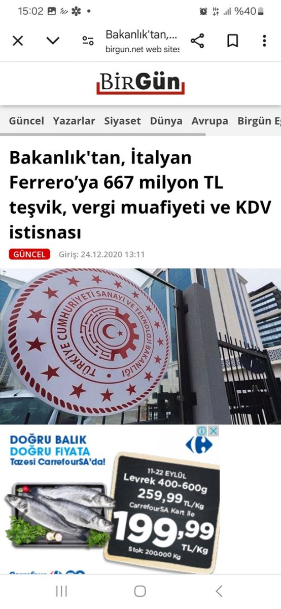 1.Ferrero’ya verilen destekler(yaklaşık yılda 10 bin ton fındık),100 Türk girişimciye verilsin.