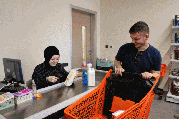 Bir diğer uygulama alanı ise reyon görevlisi eğitimi. Bu eğitim kapsamında bireyler, market ortamında ürün yerleştirme, düzenleme ve müşteriyle iletişim gibi alanlarda uygulamalı deneyim kazanıyor. Sürecin devamında ise kasiyerlik eğitimleriyle kasa kullanımı, ödeme alma ve fiş kesme gibi işlemleri birebir uygulayarak iş deneyimini pekiştiriyorlar. Aynı zamanda kendilerine ve bütçelerine uygun ürünleri seçme konusunda da eğitim alıyor böylece ihtiyaçlarını bağımsız şekilde karşılama becerisi edinmiş oluyorlar.