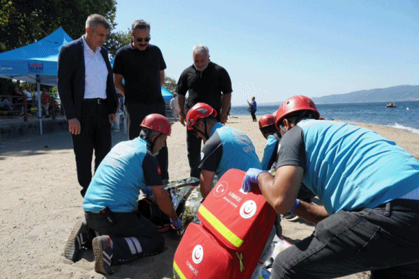 Dalgıçlar tarafından denizde boğulma tehlikesi geçiren ve su altında kalan binanın batığından çıkarılan yaralılar, ilk müdahalelerinin ardından hastaneye kaldırıldı. Vatandaşların yoğun ilgisi altında başarıyla tamamlanan tatbikat sonrasında Başkan Sezer, kurtarma ekiplerini tebrik etti.