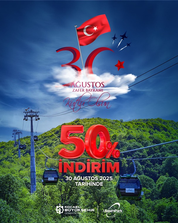 50 yıllık hayalin Büyükşehir’le gerçeğe dönüştüğü Kartepe Teleferik’te eşsiz yolculuk, 30 Ağustos Zafer Bayramı’nda indirimli olarak gerçekleşecek. Büyükşehir Belediyesi iştiraki UlaşımPark tarafından işletilen Kartepe Teleferik, 30 Ağustos Cumartesi günü tam ve öğrenci tarifelerinde yüzde 50 indirimli hizmet verecek. Aileler, yetişkinler ve çocuklar, 30 Ağustos coşkusunun yaşandığı günde şehir ve doğa manzarasında seyahat edebilecek.