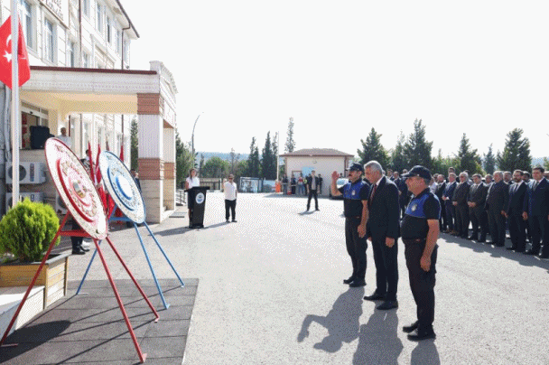 Tebriklerin kabulünün ardından Kaymakamlık önünde çelenk sunma töreni yapıldı. Ardından saygı duruşunda bulunulup İstiklal Marşı okundu.