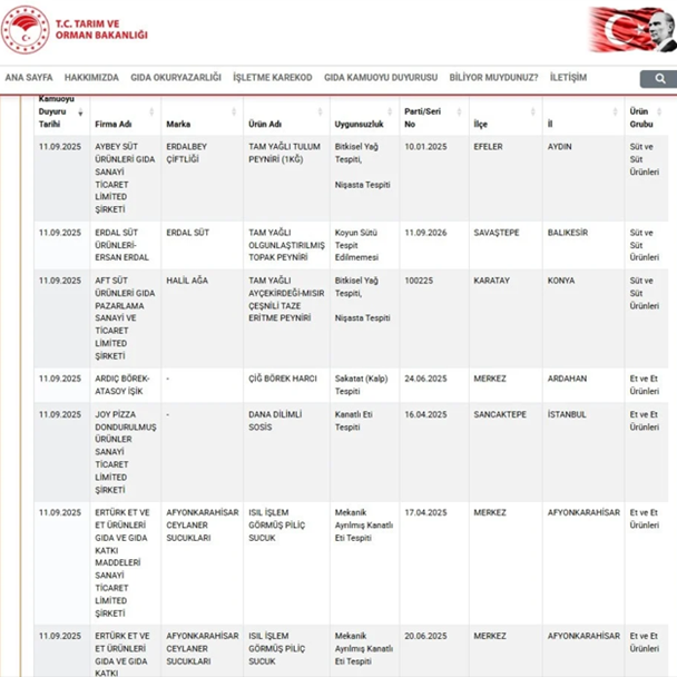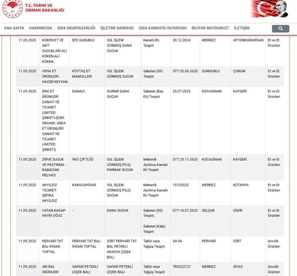 Tarım ve Orman Bakanlığı'nın denetimleri sonucunda özellikle sucuk ürünlerinde ciddi uygunsuzluklar belirlendi.