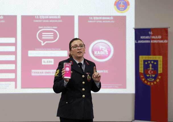 Seminer kapsamında, Kocaeli İl Jandarma Komutanlığı Aile İçi Şiddetle Mücadele ve Çocuk Kısım Amiri J. Başçavuş Şenay Soylu, Kadın Destek (KADES) uygulamasının kullanımı, şiddet durumunda başvuru mekanizmaları ve kadınların acil durumlarda kendilerini nasıl koruyabilecekleri konusunda katılımcıları bilgilendirdi.
