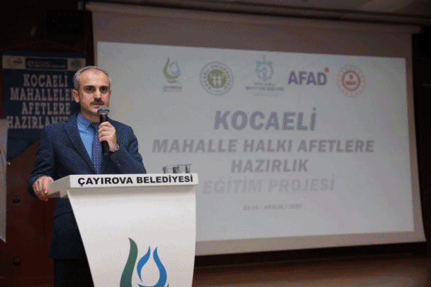 Çayırova’da afetlere karşı ilçe sakinlerini bilinçlendirme çalışmaları tüm hızıyla devam ediyor. Bu bağlamda Kocaeli Büyükşehir Belediyesi, AFAD ve Kocaeli Üniversitesi’nin iş birliğinde gerçekleştirilen ‘Mahalle Halkı Afetlere Hazırlık Eğitimi Projesi’ Çayırova’da başladı. Çayırova Belediyesi’nin ev sahipliğinde düzenlenen ve ilçe bazında 10’uncusu düzenlenen eğitimler, iki gün sürecek. Çayırova Belediyesi Kültür Merkezi’nde düzenlenen programa Çayırova Belediye Başkanı Bünyamin Çiftçi, Kocaeli Büyükşehir Belediye Başkanvekili Hasan Soba, muhtarlar ve vatandaşlar katılım sağladı.