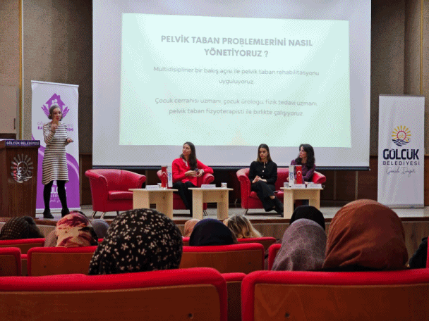 Gölcük Belediyesi Kadın ve Aile Birimi koordinasyonunda düzenlenen seminerde; Çocuk Cerrahisi Uzmanı Op. Dr. Ayten Başak Kılıç, Kadın Doğum Uzmanı Op. Dr. Fatma Bilge Öğütcüoğlu, Psikolojik Danışman Gözde Nazlı İçer ve Fizyoterapist Busenur Yıldırım, idrar ve gaita kaçırma sorunlarına yönelik önemli bilgiler paylaştılar. Sunumlar ile başlayan seminer, dinleyicilerden gelen soruların uzmanlar tarafından cevaplanması ile sona erdi.