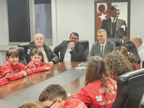 Gölcük Belediyespor Yüzme Kulübü sporcuları, Türkiye Yüzme Federasyonu 10-11-12 Yaş Ulusal Gelişim Projesi Ligi vize yarışlarında barajları aşarak Mersin’deki Bölge Müsabakaları ve Trabzon’daki Türkiye Finalleri’nde başarı ile mücadele ettiler. Elde ettikleri başarılar ile ilçenin gururu olan yüzücüler, Gölcük Belediye Başkanı Ali Yıldırım Sezer’i makamında ziyaret ettiler. Ziyarette kazandıkları başarıların mutluluğunu Başkan Sezer ile paylaşan yüzücüler, destekleri için tüm belediye ekibine teşekkür ettiler.