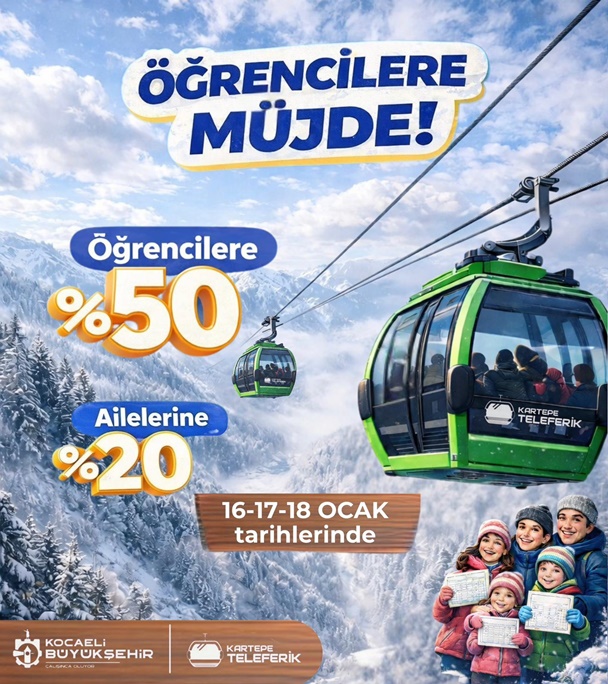 16-18 Ocak tarihleri arasında yüzde 50, ailelerine ise yüzde 20 indirim uygulanacak. Kampanya sayesinde öğrenciler, ara tatilde aileleriyle birlikte Kartepe’nin beyaz örtüyle buluşan doğal güzelliklerinde keyifli anlar yaşayacak.