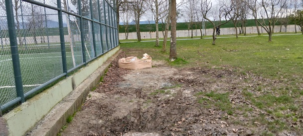 Kartepe Şehit Kamil Akgün Parkı içinde halı saha bakımı yapıldı. Fakat sonrasında lastik granüller ve kumlar toplanmadı.