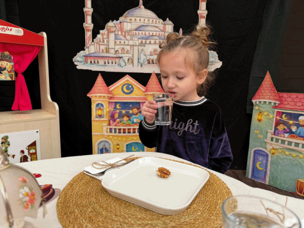 Etkinlik kapsamında çocuklara Ramazan’ın önemli geleneklerinden biri olan “tekne orucu” tanıtıldı. Minikler, iftar sofraları temalı hazırlanan alanda Ramazan ruhunu deneyimleyerek paylaşmanın ve sabrın önemini eğlenceli bir atmosferde öğrendi.