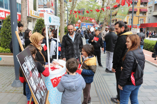 Etkinliğin en hüzünlü ve yürek burkan detayı ise, bayram coşkusuna gölge düşüren o sessiz afişti. Son dönemde okullarında maruz kaldıkları şiddet neticesinde hayattan koparılan, bu bayramı akranları gibi kutlayamayan yavrularımızın fotoğrafları standın başköşesindeydi.