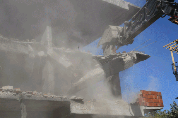 Gölcük’te terk edilmiş bir bina daha yıkıldı