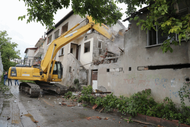 Gölcük’te terk edilmiş bir bina daha yıkıldı
