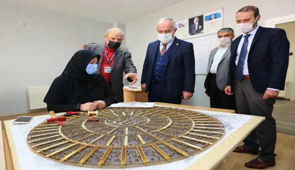 Derince Belediye Başkanı Zeki Aygün de Dumlupınar Mahallesi’nde faaliyet gösteren Kusachi DER-MEK binasını ziyaret ederek, usta öğreticiler ve kursiyerler ile bir araya geldi. Koronavirüs önlemleri çerçevesinde eğitim faaliyetlerinin devam ettiğini belirten Başkan Aygün, “Kurslarımızda sosyal belediyecilik anlayışı içerisinde çok güzel eserler ortaya çıkıyor. Bu çalışmalarda emeği geçen tüm kursiyerlerimizi ve usta öğreticilerimizi kutluyorum. Bizler bugüne kadar olduğu gibi bundan sonra da her zaman sizlerin yanınızda olmaya devam edeceğiz” dedi.
