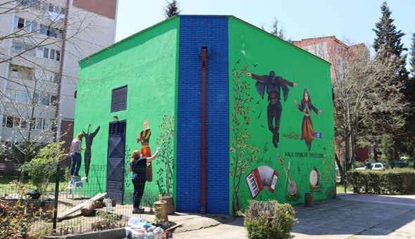 Pandemi sürecinde halk oyunları emekçilerinin çektiği zorluğa değinen İzmit Belediyesi halk oyunlarına gönül verenlere anı bırakmak ve vatandaşın gülümsemesini sağlamak adına Yahya Kaptan Palmiye Sokak’ta elektrik trafosuna duvar boyama çalışması yaptırdı. Fırçasını ve boyaları alarak duvar başına geçen duvar boyama sanatçısı Ecaterina Nicolau çalışmasını bitirdiğinde herkesin beğenisini kazanan bir resim ortaya çıktı.