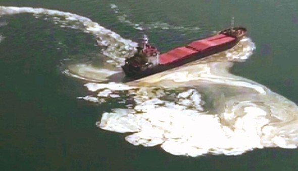 Payla??lan görüntülerde Marmara Denizi'ne bilinçli olarak bir gemi taraf?ndan at?k b?rak?ld??? iddia edildi.