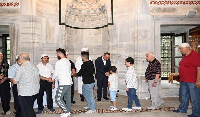 Kocaeli her zaman huzurlu bir şehir. Dini bayramların, insanlarımızın dini duygularının daha yükseldiği, herkesin birbiriyle ilişkisine daha çok dikkat ettiği, küskünlerin dargınlıkların da ortadan kalktığı bir gün olması vesilesiyle bu güzellikler insan ilişkilerine de yansıyor. Bu vesileyle bir kez daha vatandaşlarımızın, aziz milletimizin ve İslam âleminin bayramını tebrik ediyorum.” dedi. Konuşmaların ardından camii bahçesindeki vatandaşlarımızla da bir süre hasbihal eden, Vali Yavuz, bayramlarını kutladı.