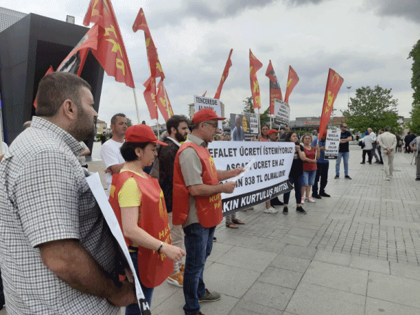 Asgari Ücret Tespit Komisyonu, asgari ücrete yapılacak ara zam oranını görüşmek üzere 19 Haziran’da ikinci toplantısını yapacak. Yarınki toplantı öncesi Gebze Kent Meydanı’nda bir araya gelen Halkın Kurtuluş Partisi (HKP) üyeleri, “Sefalet ücreti istemiyoruz! Asgari ücret en az 34 bin 838 TL olmalıdır” yazılı pankart açarak sloganlar attı.