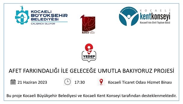 Kocaeli Büyükşehir Belediyesi İtfaiye Dairesi Başkanlığı’ndan eğitmenlerin katılımı ile gerçekleştirilecek olan seminer 21 Haziran Çarşamba günü saat 17.30’da KOTO Hizmet Binası’nda gerçekleştirilecek. Tüm katılımcılara açık olan bilgilendirme toplantısında; afet öncesi ev ve işyerlerinde yapılması gereken hazırlıklar, afet sırasında doğru davranış şekilleri, afet sonrası ilk anların önemi gibi konularda detaylı ve uygulamalı bilgiler verilecek. “Afet Farkındalığı ile Geleceğe Umutla Bakıyoruz Projesi” saha anket çalışmaları, eğitimler, danışmanlık hizmeti verilmesi, artırılmış gerçeklik ve sanal gerçeklik gözlükleri ile doğal afet simülasyonu uygulanması ile devam edecek.