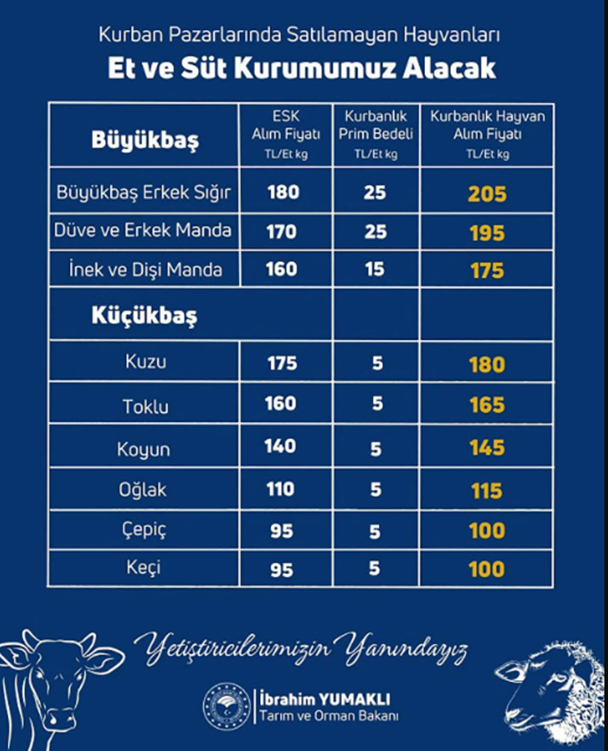 Yumaklı hayvanlar için belirlenen ücretleri de paylaşıp "Hayvansal üretimimize güç katan yetiştiricilerimizin her daim yanında olmaya devam edeceğiz." dedi.