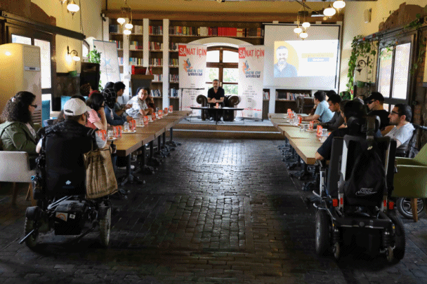 “Sanat İçin Ben de Varım Projesi’nde” 16-29 yaş aralığındaki engelli bireyler görsel sanatlar, geleneksel el sanatları, edebiyat, sinema, tiyatro, müzik ve dijital medya alanlarında eğitimler alıyor. 2 aşamalı olan projede bireylerin aldıkları eğitimlerin sonucunda ortaya çıkaracakları eserler kültür endüstri ürünlerine dönüşmesini sağlayacak. Kültür-sanat alanlarında yenilikçi bir anlayışla özel bireyleri sanat dalları ile buluşturan proje Kültür ve Turizm Bakanlığı tarafından Gelecek Gençlerin Kültür Endüstrileri Destek Programı ve Kocaeli Büyükşehir Belediyesi tarafından destekleniyor. Proje ile özel gereksinimli bireylerin yetenek ve davranışlarının değişmesine ve ilerlemesine yardım ederek, içinde yaşadığı toplumda birliktelik bilinci kazanmasına hizmet ettiği belirtiliyor.