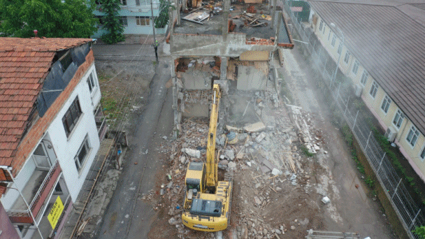 Başkan Yardımcısı Cem Güler, “Mehmet Ali Paşa Mahallesi Emin Sipahi Sokak ile Mustafa Çalık Sokak’ta yaptığımız kamulaştırma sürecinin sonuna geldik. 2021 yılı Şubat ayında başlamıştık. Mahkeme kararları ve kamulaştırma süreci tamamlandı. Vatandaşlarımızla görüşerek 11 parselde toplam 12 binada işlem yaptık. Bugün son 3 bina kaldı. Fen İşleri Müdürlüğü ekibimiz bu 3 binayı yıkıyor. Uzun yıllardır kangren olan, vatandaşlarımızın da şikayet ettiği bir konuyu çözmüş olacağız.