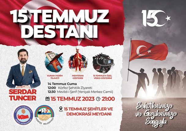 Türkiye genelinde olduğu gibi Körfez’de de 15 Temmuz hain darbe girişiminin yıl dönümünde çeşitli programlar gerçekleştirilecek. Program kapsamında ilk olarak 14 Temmuz Cuma günü saat 12.00’de Körfez Şehitliği’nde anma gerçekleştirilecek. Hemen ardından da öğle namazına müteakip şehitlerimiz için Yeniyalı Merkez Camii’nde Kur’an-ı Kerim okunacak.