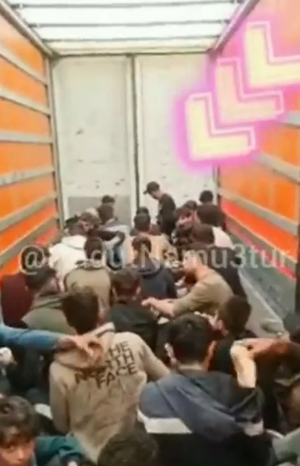 Videoda hepsi erkek sığınmacıların olduğu kaçakların kamyon içerisinde Türkiye’ye geldiği iddia edildi.