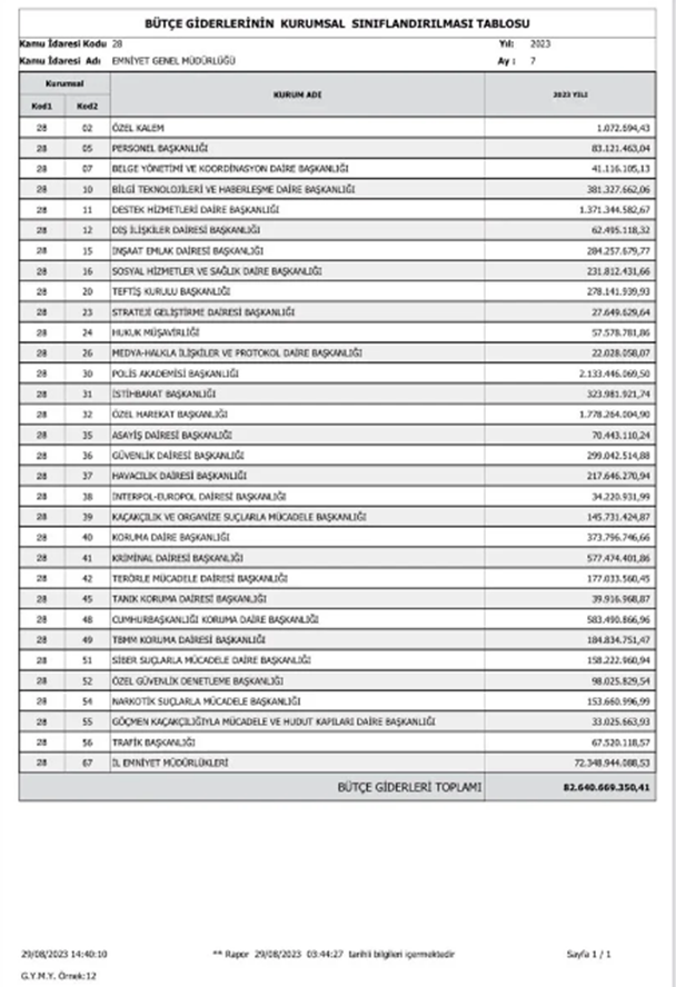 Emniyet Genel Müdürlüğü Temmuz ayı Mali Tablosu ortaya çıktı. Tabloda Göçmen kaçakçılığıyla mücadele ile Cumhurbaşkanlığı korumasına ayrılan bütçe dikkat çekti.