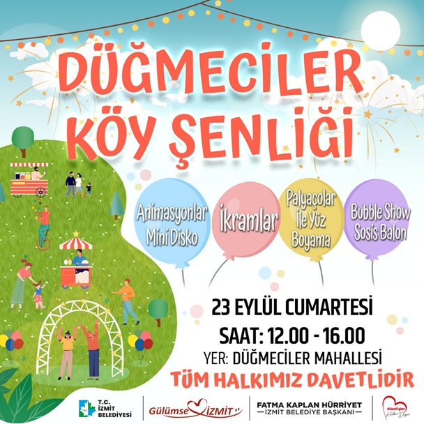 İzmit Belediyesi, kırsaldan kente göçün yoğun olduğu dönemde köy hayatını hareketlendirmek ve değerlerimizi yaşatabilmek adına Düğmeciler Mahallesinde Köy Şenliği yapacak. Etkinlik önümüzdeki cumartesi günü (23 Eylül) saat 12.00 ile 16.00 arasında gerçekleştirilecek. Köy Şenliği programı kapsamında bubble Show, sosis balon, palyaçolar ile yüz boyama, animasyon, mini disko gibi etkinliklerle vatandaşlar doyasıya eğlenecek. Programda ayrıca çeşitli ikramlarda da bulunulacak.