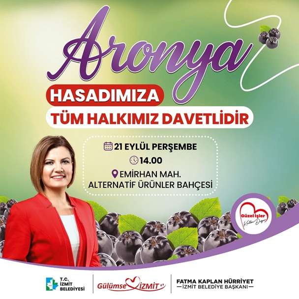 Zengin içeriği ve insan sağlığına katkısı nedeniyle süper meyve olarak adlandırılan aronyanın hasadı İzmit Belediyesinin Emirhan Mahallesi’nde bulunan Alternatif Ürünler Bahçesi’nde 21 Eylül Perşembe günü (yarın) saat 14.00’te vatandaşların katılımıyla gerçekleşecek.