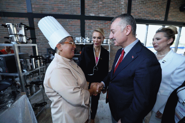 Konuşmasına “Bu şehrin kadınlarına inanıyoruz” diye devam eden Başkan Büyükakın, “Bu şehri daha da zenginleştireceğinize, çok daha başarılı işlerin yapılmasına vesile olacağınıza yürekten inanıyoruz. Yerel yönetimlerin asli vazifesi ön açmaktır, fırsat yaratmaktır. İmkanlara ulaşmayı kolaylaştırmaktır. Yani imkanları fark etmenize, o alanlardaki yeni iş olanaklarına da kavuşmanıza yardımcı oluyoruz. Akademiye, iş dünyasına ve ekonomiye fırsat veren ülkelerin geliştiğini, diğerlerinin geride kaldığını görüyoruz. Bu mantıktan yola çıkarak geçtiğimiz senelerde biz de KOİDER başkanımıza ‘Bunu uluslararası ortama taşıyalım’ demiştik. Ve bugün hayalimiz gerçek oldu ve Türk dünyası açısından bir ilk gerçekleşti. Muhtemelen diğerlerine de örnek olacak ve yenileri de yapılacak. Bu vesileyle de burada iş dünyasını birbiriyle buluşturduk” ifadelerini kullandı. Başkan Büyükakın’ın konuşmasının ardından kürsüye gelen KOİDER Başkanı ve GİFED Uluslararası İlişkiler Komisyonu Başkanı Nihan Çakıcı, çıktıkları bu yolda kendilerine destek veren Büyükşehir Belediye Başkanı Tahir Büyükakın’a teşekkür ederek, plaket takdim etti. Ayrıca Başkan Büyükakın, fuaye alanında kurulan tüm stantları tek tek gezerek iş kadınlarını tebrik etti.